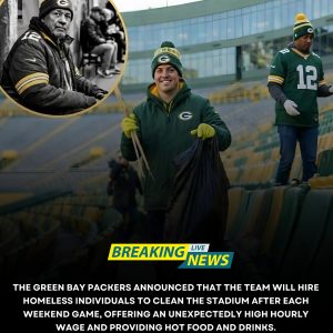The Green Bay Packers announced that the team will hire homeless individuals to clean the stadium after each weekend game, offering an unexpectedly high hourly wage and providing hot food and drinks. bebe