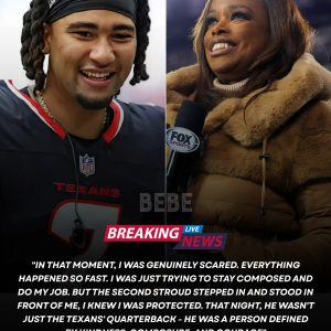 After a convincing win over the Colts, QB C.J. Stroud skipped the postgame press conference and ran straight to FOX Sports’ “Sideline Princess” Pam Oliver — a viral video moment in which he shielded and protected the reporter from an over-aggressive Colts player, leaving the entire NFL bowing in respect. bebe