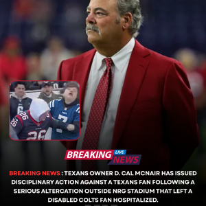 BREAKING NEWS: Texans owner D. Cal McNair has issued disciplinary action against a Texans fan following a serious altercation outside NRG Stadium that left a disabled Colts fan hospitalized. bebe
