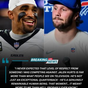 While the Eagles celebrated a 13–12 win, Josh Allen erupted in frustration — until Jalen Hurts stunned everyone by crossing the field to calm him with quiet, respectful words that changed the moment. bebe