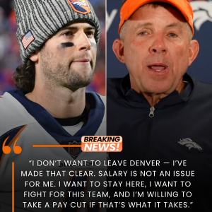 “I DON’T WANT TO LEAVE DENVER. SALARY IS NOT AN ISSUE,” Denver Broncos veteran quarterback Jarrett Stidham shocked the NFL when he announced he was willing to take a pay cut to stay with the team. Head coach Sean Payton immediately spoke up. teptep