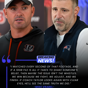 After the loss to the Patriots, Bengals head coach Zac Taylor filed a complaint with the NFL with a short 10GB video exposing the referee’s whistles for the disadvantageous advantages for the Bengals, Patriots head coach Mike Vrabel gave 7 words that caused the Patriots community to explode and made Zac Taylor withdraw the complaint out of shame.abc