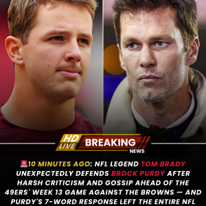 10 minutes ago: NFL legend Tom Brady unexpectedly defends Brock Purdy after harsh criticism and gossip ahead of the 49ers’ Week 13 game against the Browns — and Purdy’s 7-word response left the entire NFL speechless.susu